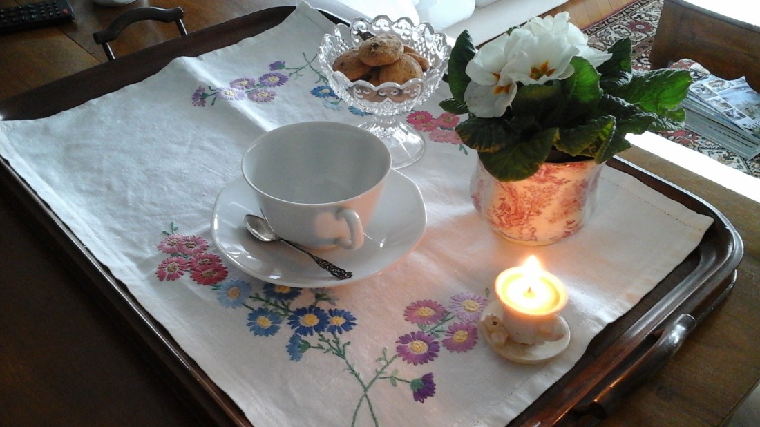 Voglio iniziare le vostre foto con quelle di Elisabetta. Ho incontrato lei e la sua amica a Parma al Mercanteinfiera, ogni volta che mi vedono mi ricordano di quando, tanti anni fa, esponevo a Novegro tutti i mesi, e loro venivano ad acquistare le tovagliette prezzate in lire. Che bei ricordi … Questa con le margherite fa parte degli acquisti pagati con il vecchio conio, il vaso con toile de jouy è la sua ultima compera. Grazie Elisabetta per tutti questi anni di fiducia